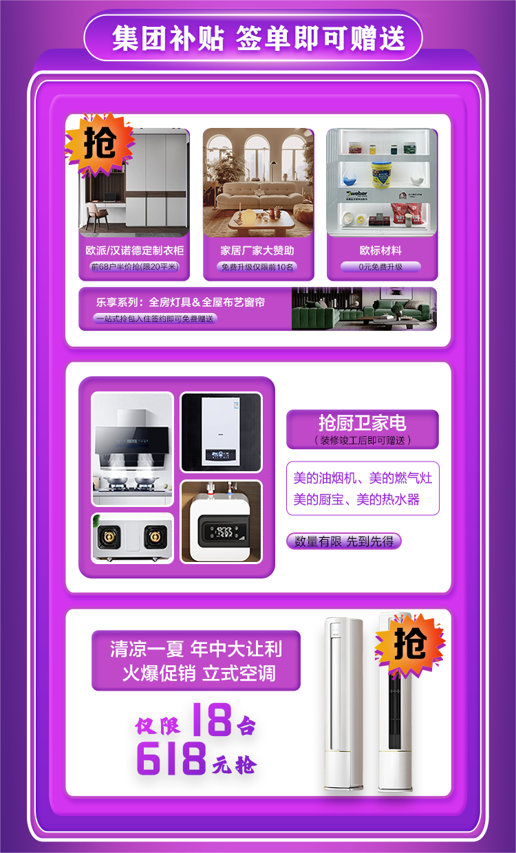 限時搶購:活動期間,每天還將推出一定數量的廚衛家電定裝修搶家電,數量有限先到先得。互動抽獎:為了讓您更加深入地參與到我們的活動中來,我們還特別設置了砸金蛋環節。100%中獎。